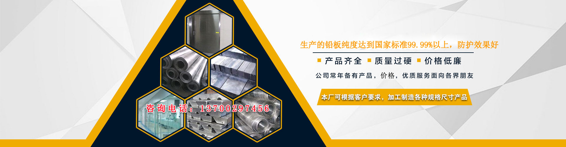 西安鑫順豐鋼鐵有限責(zé)任公司專業(yè)從事生產(chǎn)高純度的鉛板、鉛門、硫酸鋇砂、防輻射鉛板、鉛錠、鉛磚、鉛玻璃、硫酸鋇等防護(hù)器材的單位,生產(chǎn)的鉛板主要是采用含鉛量為99.994%的1#電解鉛。目前產(chǎn)品已廣泛應(yīng)用于鍋爐壓力容器、石油化工、壓力管道、航空航天、機(jī)械、軍工、核工業(yè)、醫(yī)學(xué)、電力、電子、輻照等多個行業(yè)。鉛玻璃系列:鉛玻璃鉛當(dāng)量達(dá)3.8%-4.2%,透明清晰,經(jīng)久耐用。 鉛粉系列;各種牌號鉛粉含鉛量不小于%:99.994 。粒 度:-100目~-300目,廣泛用于蓄電池化工等不同領(lǐng)域。鉛板:可用于輻射防護(hù),防腐,耐酸,化工等。鉛磚:可用于輻射防護(hù),核防護(hù)。鉛玻璃:可用于醫(yī)用防輻射室。防護(hù)門:多用于醫(yī)用,工業(yè)探傷室。防護(hù)鋇沙:多用于醫(yī)用,工業(yè)墻體,屋頂防護(hù)。